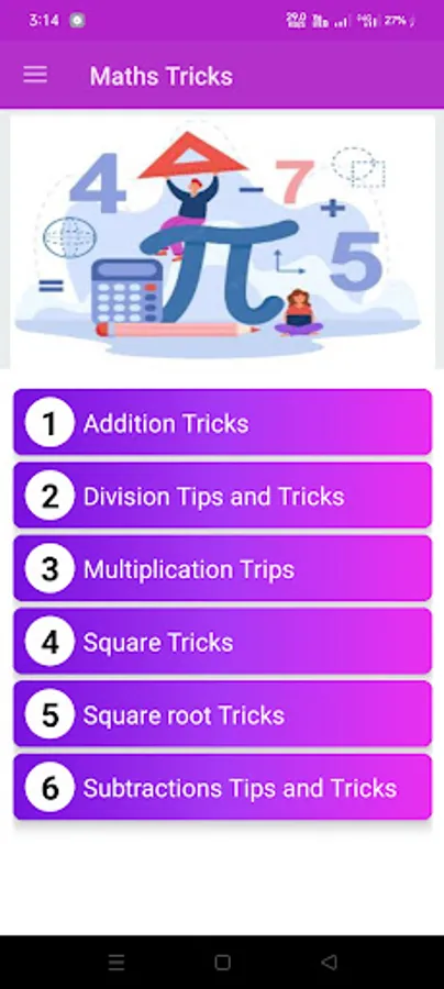 In this app we added all maths tricks, you can learn all maths tricks in this app.
