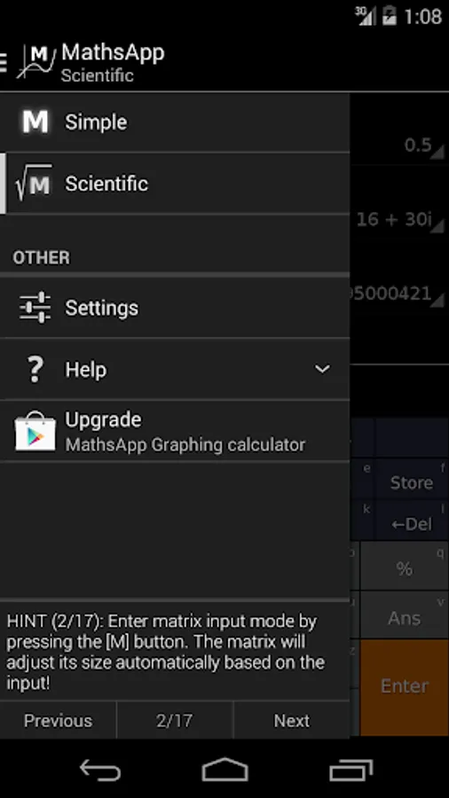 Looking for a graphing calculator, matrix support, or simply want to support the cause of creating the greatest scientific calculator app on Android? Get MathsApp Graphing Calculator: https://play.google.com/store/apps/details?id=com.mathsapp.graphing