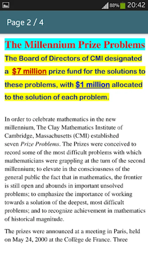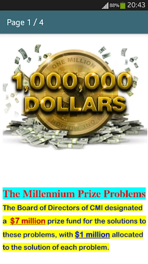The Board of Directors of CMI designated a $7 million prize fund for the solutions to these problems, with $1 million allocated to the solution of each problem.