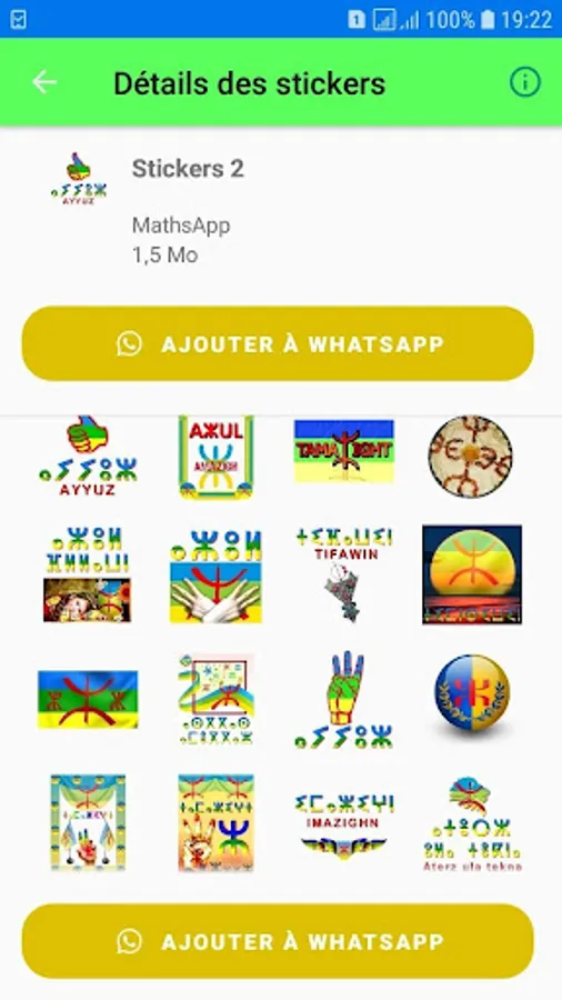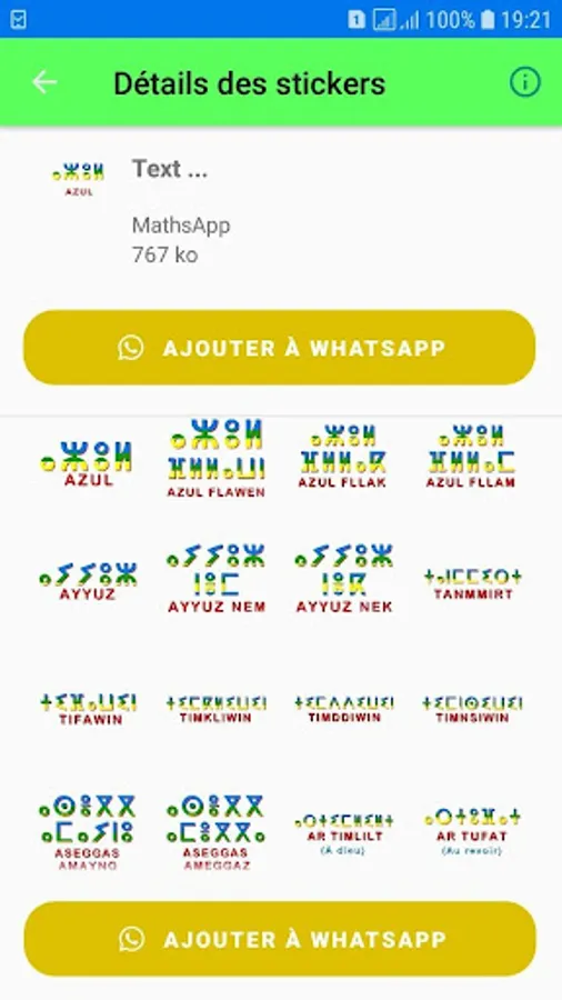 This app contains various collections of stickers - stickers - Amazigh for WAStickerApps, amazigh emoji, amazigh text and other beautiful stickers for 100% amazigh discussion.