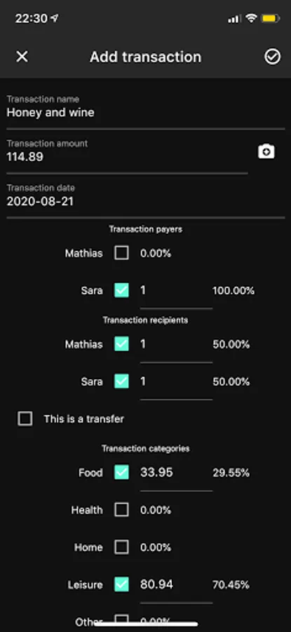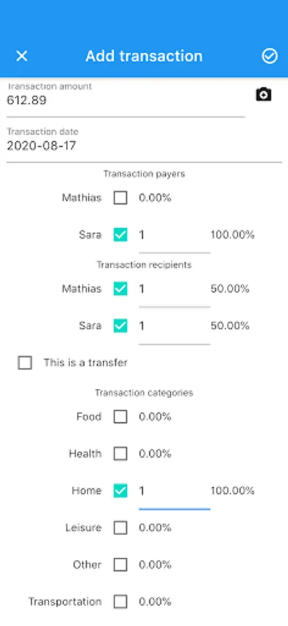 - Have a custom repartition of payers, recipients, and categories