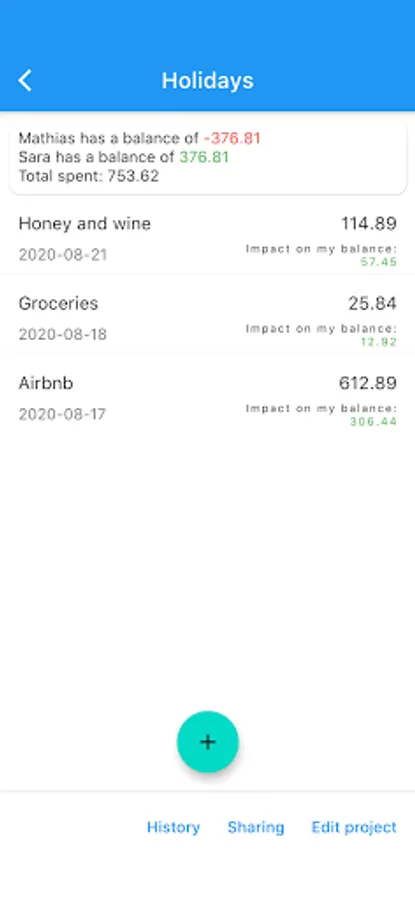 - Split transactions among participants of a project