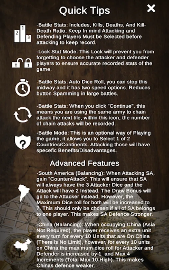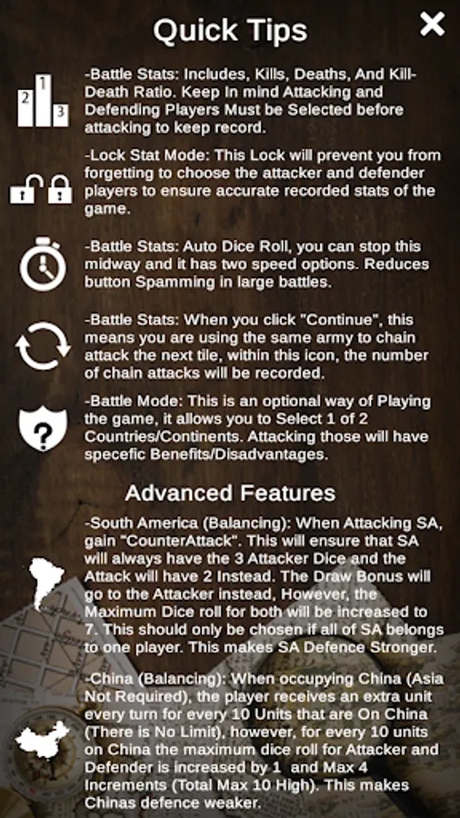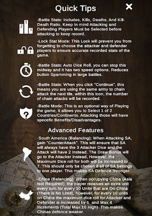 1- If chosen, South America has (Counter attack mode) Ability which gives it the attacking dice even when defending an attack while the full content is occupied by one player. Also Max Dice roll when SA is attacked is increased to 7 for both attacker and defender (this Increases SA defence win rate)