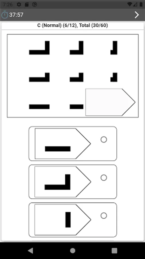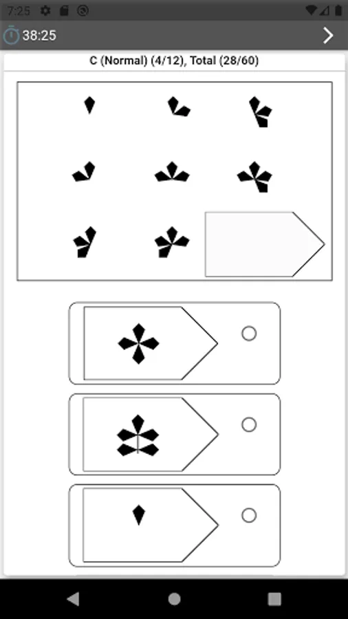 This app has many visual patterns test questions.