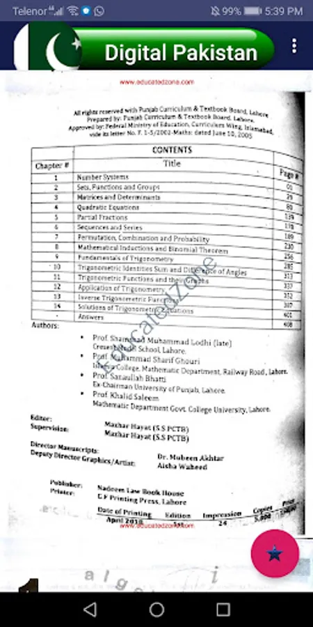 This book (Mathematics Book-1) is for Intermediate Part-1 (11th Class).This book was released by Punjab Curriculum and Textbook Board (PCTB). This book was printed by G.F Printing Press, Lahore and published by Nadeem Law Book House, Lahore in 2018. The book is approved by the Fedral Ministry Of Education, Islamabad.