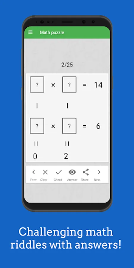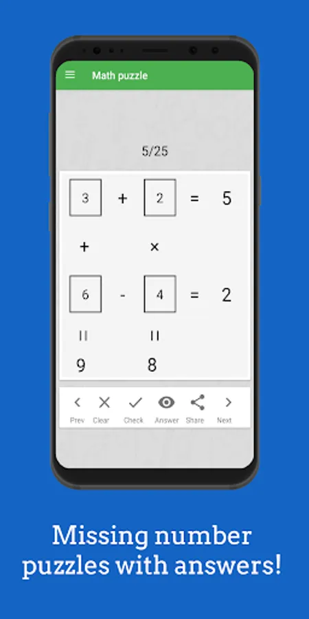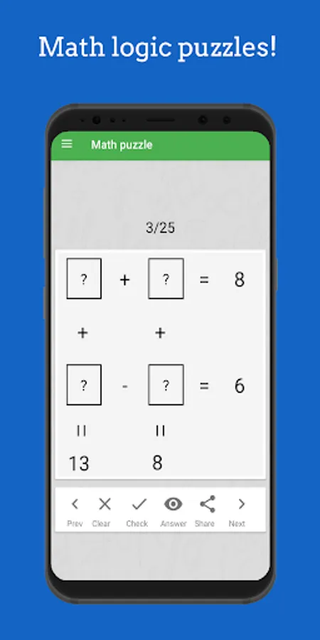Improve your skills with math puzzles and math riddles game🎮.No matter if you are looking for challenging math puzzle games or want to train and improve mental calculation🔢 in a specific area, this is the right app for you. It is a game to improve your logical skills.