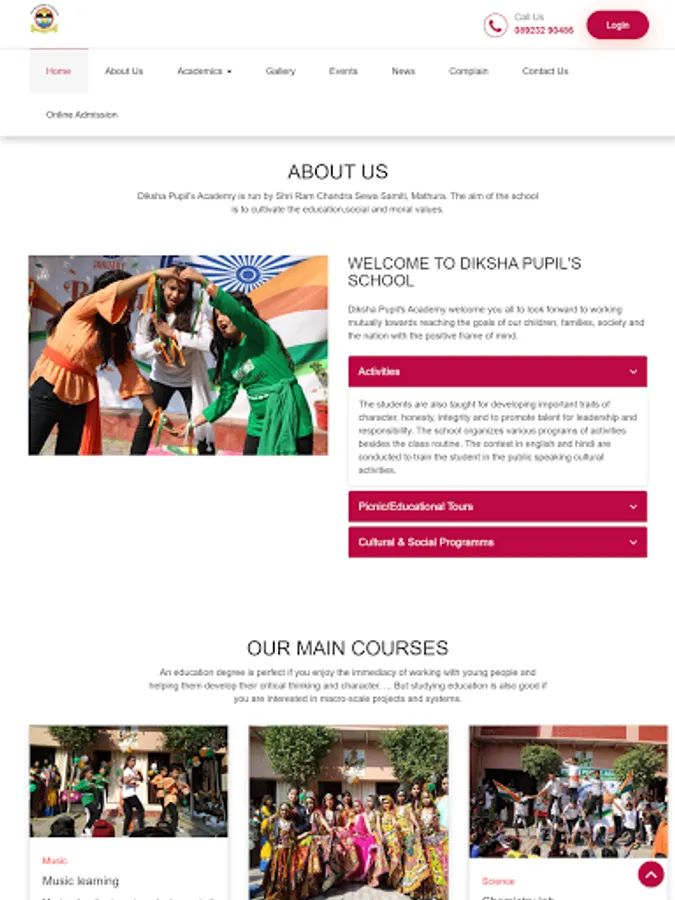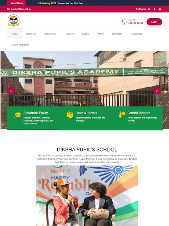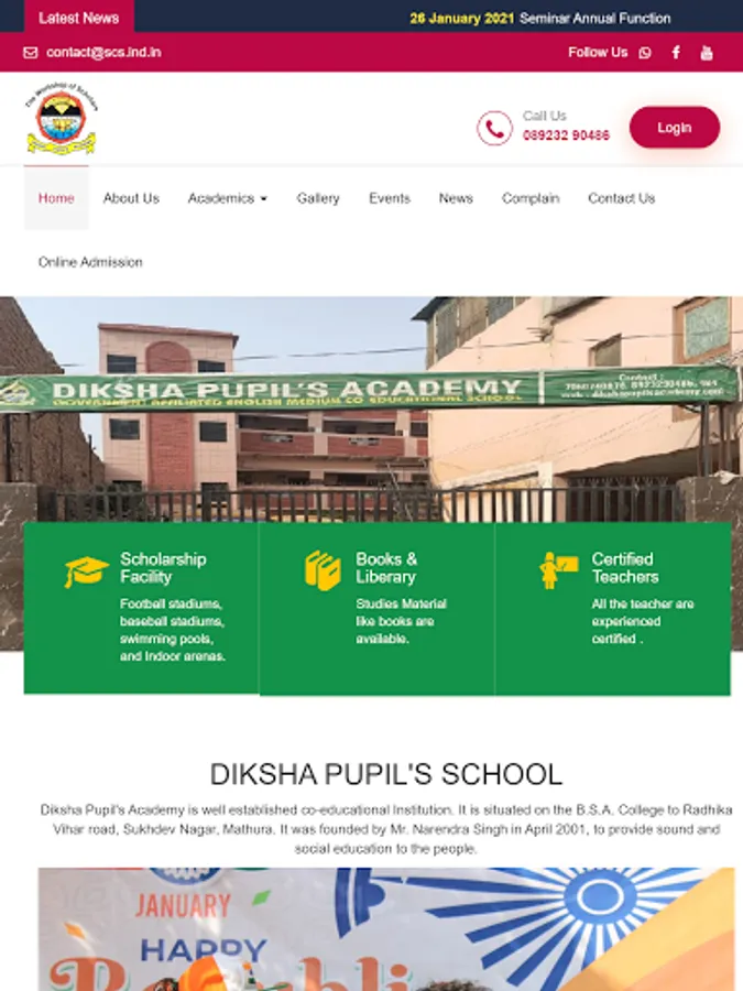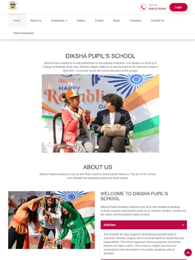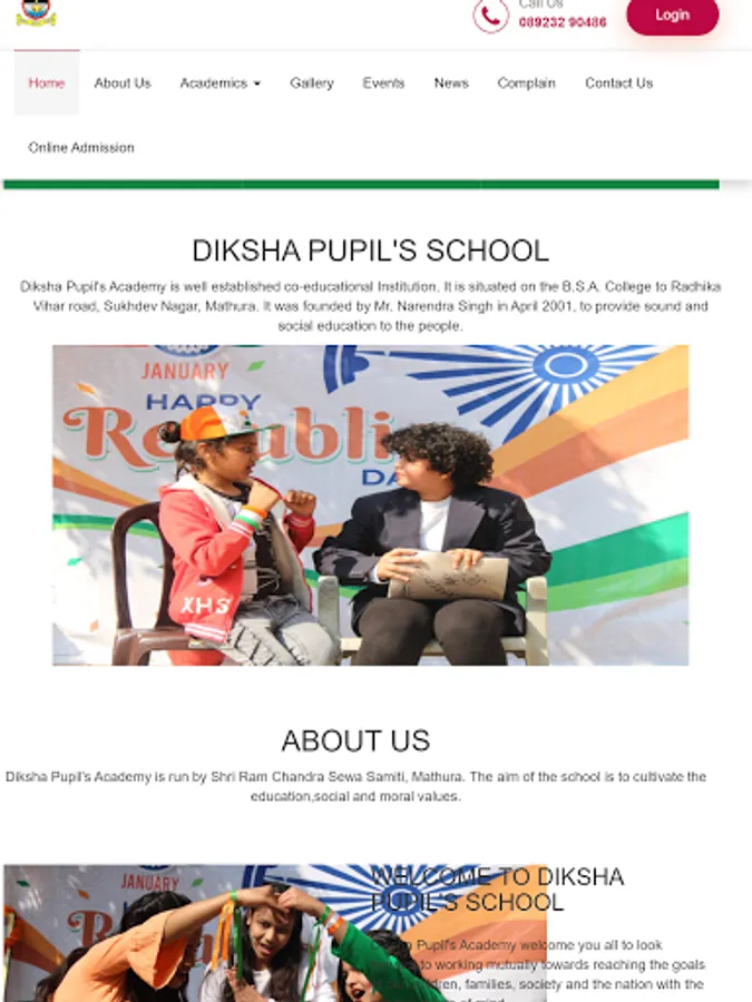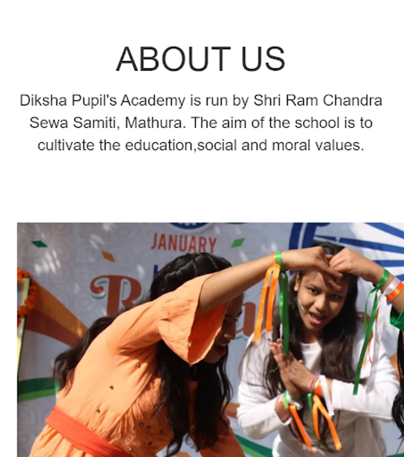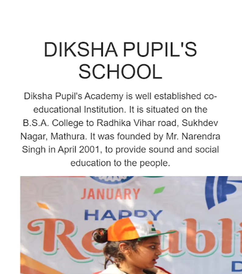 Diksha Pupil's Academy is well established co-educational Institution. It is situated on the B.S.A. College to Radhika Vihar road, Sukhdev Nagar, Mathura. It was founded by Mr. Narendra Singh in April 2001, to provide sound and social education to the people.