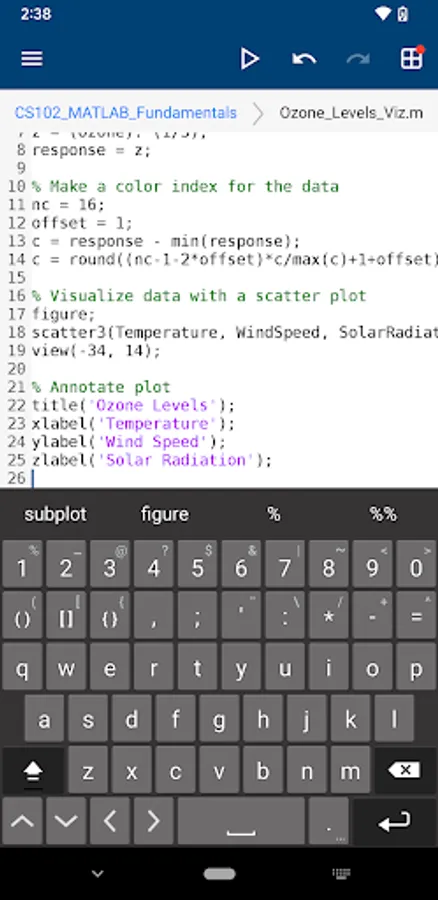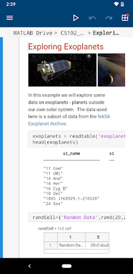 Evaluate MATLAB commands, create and edit files, view results, acquire data from sensors, and visualize data – from the convenience of your mobile device.