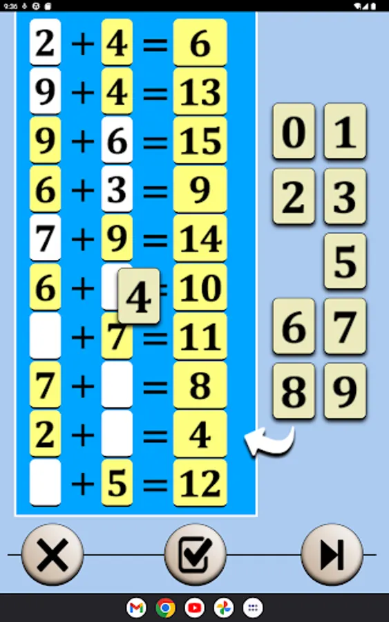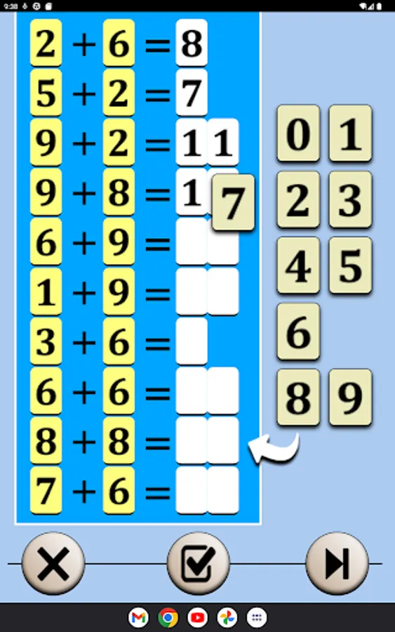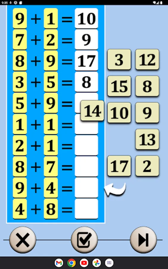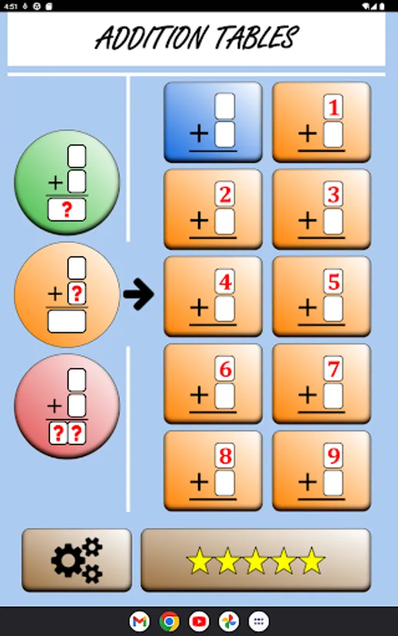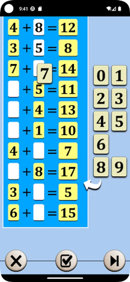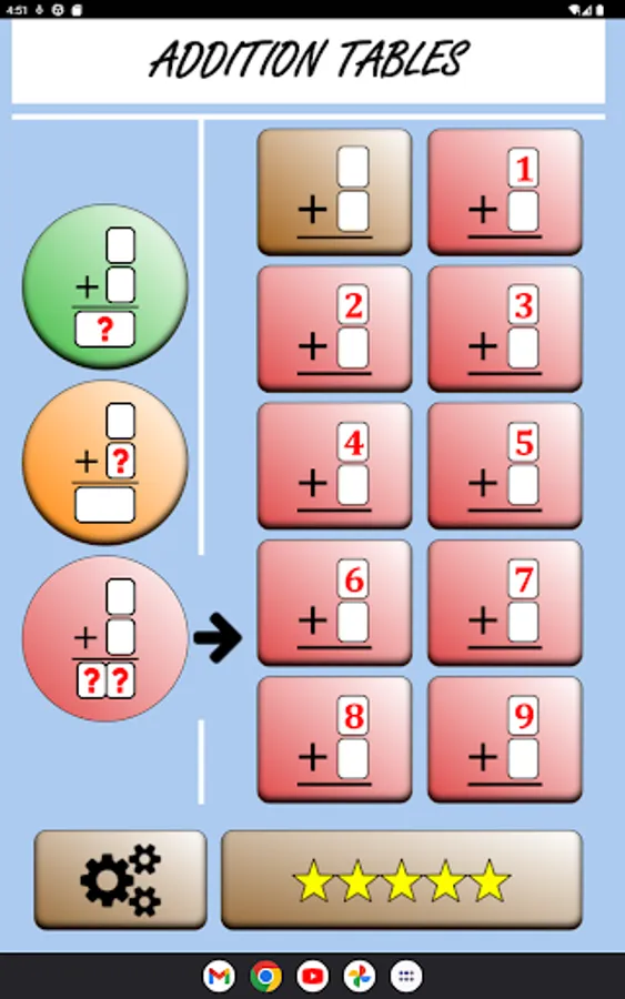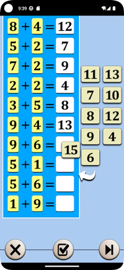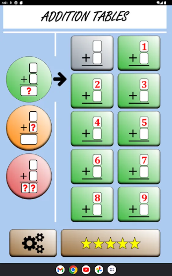 Easy and playful, the "Addition tables" application uses drag and drop for learning addition tables. The application consists of three types of quick activities: