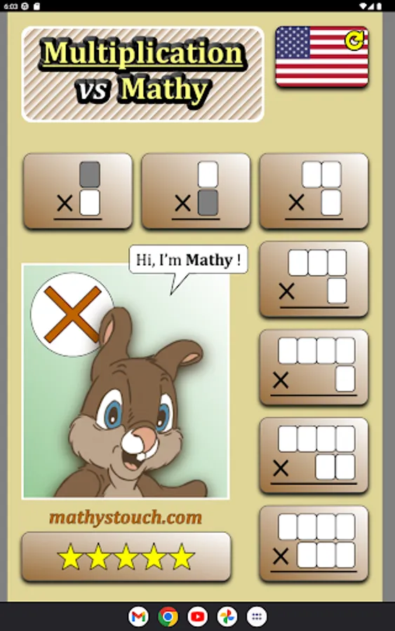 "Multiplication vs Mathy" application accompanies kids in their first multiplications. They will be able to choose between many different activities :