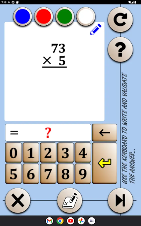 This application accompanies kids in their first multiplications. They will be able to create their own questions, their own multiplications.