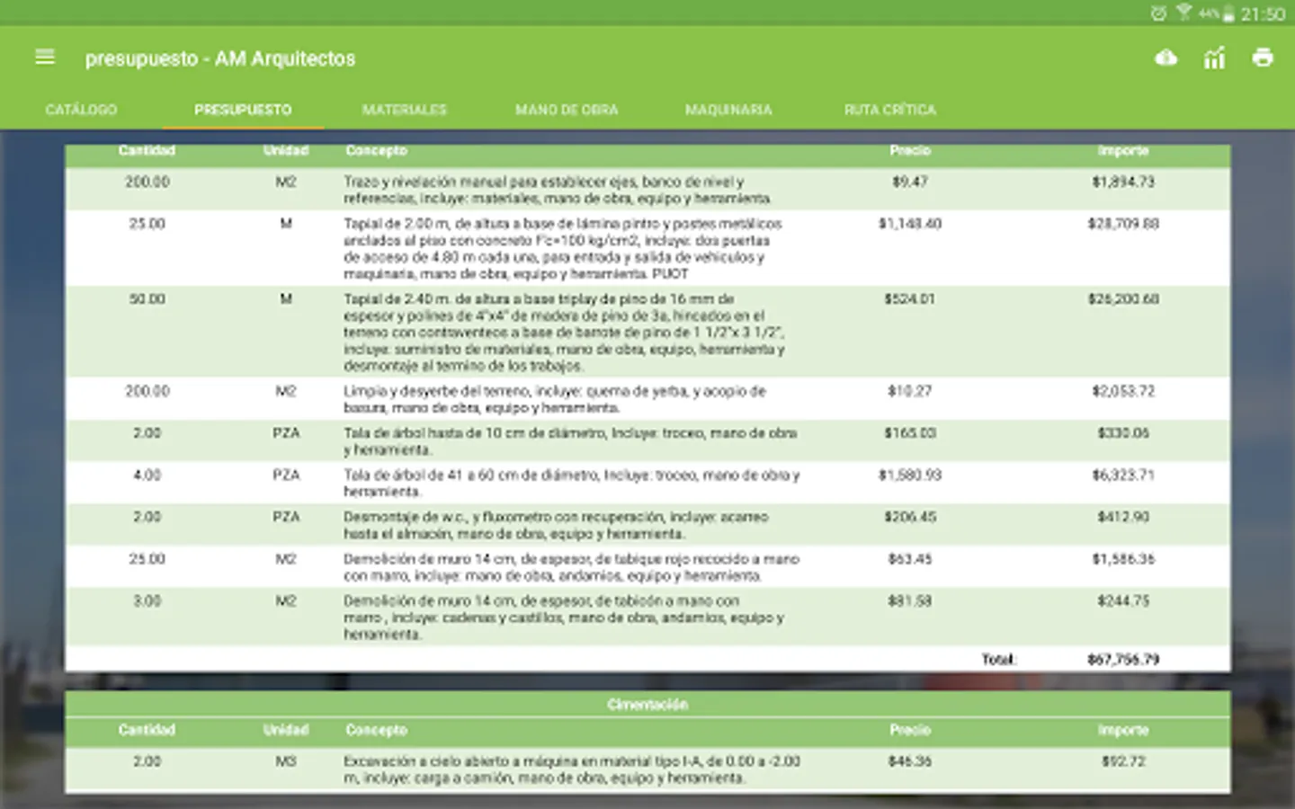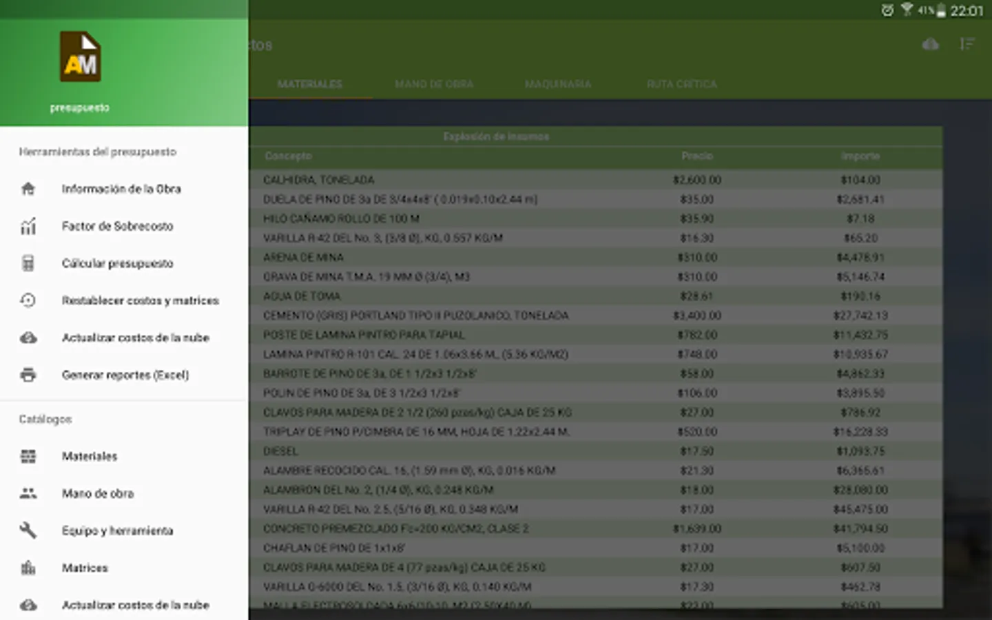 AM Materials is a unit price application with tools that allow you to see, create, edit and share work budgets whenever and wherever you want.