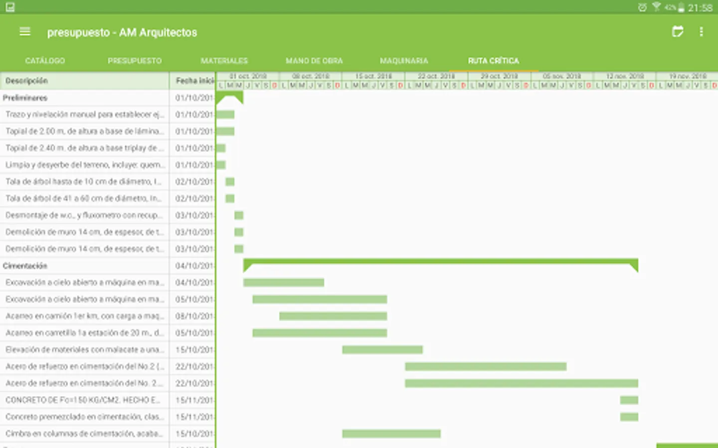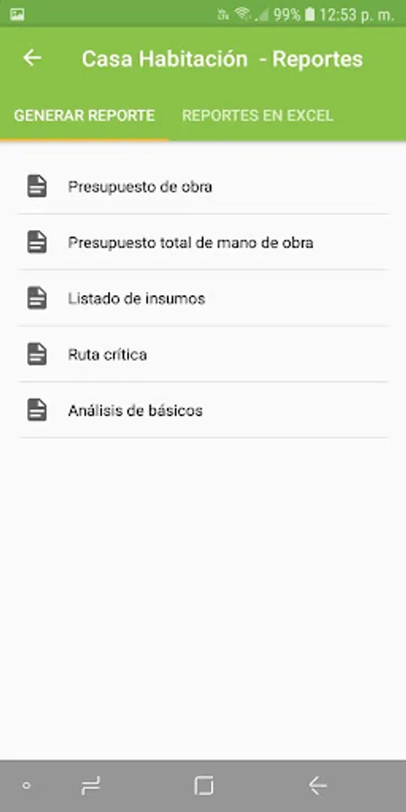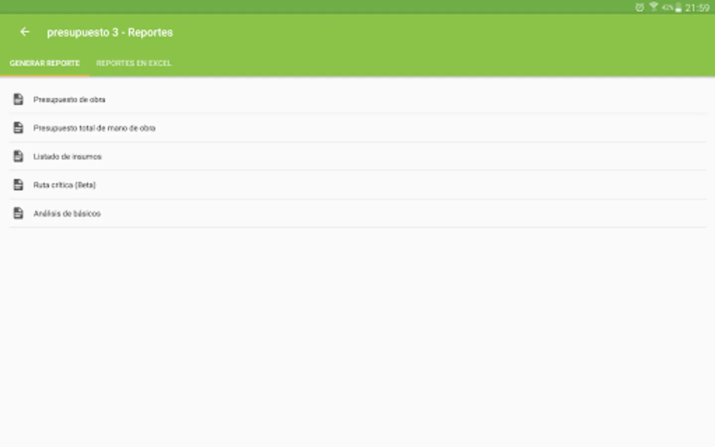 -Generation of reports in Excel: Work budget, total labor budget, input list, basic analysis and critical route¹