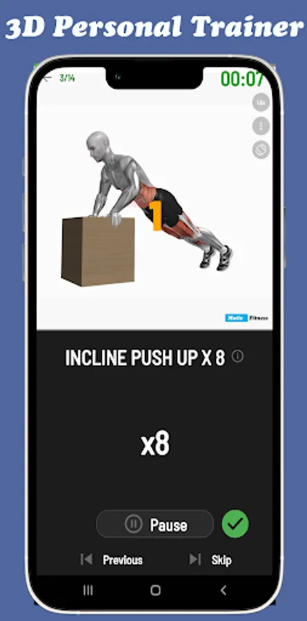 All 250 home exercises in the app are simulated with Full HD 3d video, you can easily follow each move like a personal trainer.