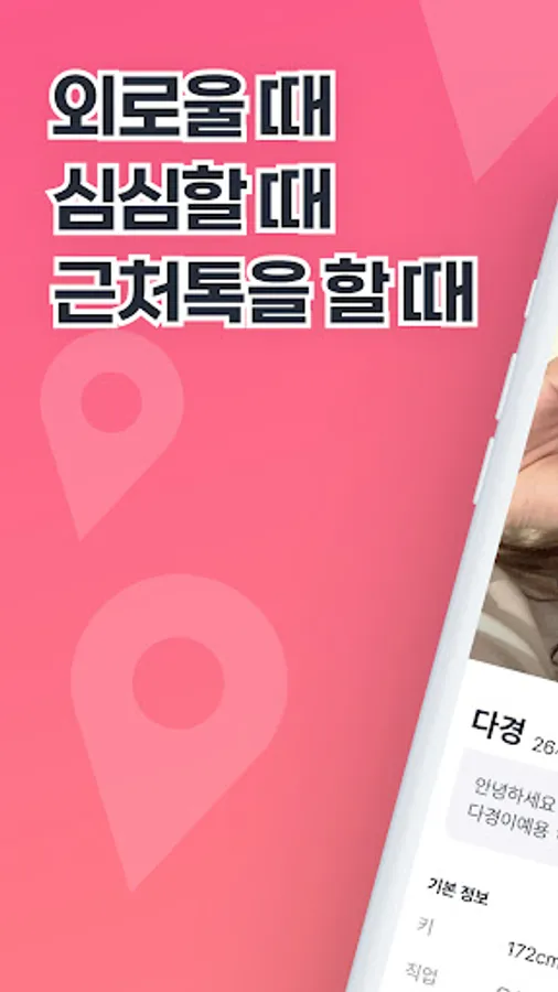 In Nearby Talk, anyone can easily and conveniently find friends in the neighborhood.
