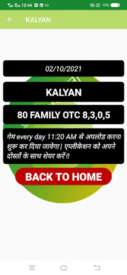 यहाँ चैनल नुमेरोलॉजी के ऊपर निर्धारित है , यहाँ पर हम आपको कल्याण डे और राजधानी नाईट का नंबर लाइन के साथ देते है | हम ये नहीं कहते की यही आएगा , हम सिर्फ आपको आकड़े बताते है , इस पर लगाना और नहीं लगाना ये आपके ऊपर निर्धारित करता है | हम किसी भी तरह की गैंबलिंग को सपोर्ट नहीं करते है यहाँ सिर्फ एक सिस्टम है जिस पर हम आपको नंबर बताते है | हमारी एप्प को ज्यादा से ज्यादा लोगो तक पहुचाये ताकि ज्यादातर लोग इस सुविधा का लाभ उठा सके |