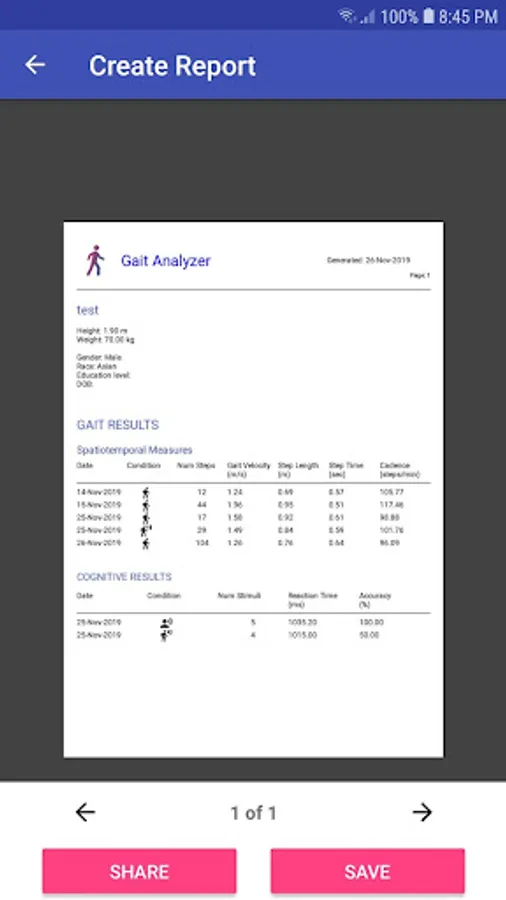 Gait Analyzer utilizes smartphone-based sensors (tri-axial accelerometer and if available gyroscope + magnetometer) in order to compute gait parameters in real-time. Parameters currently include gait velocity, step time, step length, cadence, and symmetry (more coming soon, as we continue validating!).