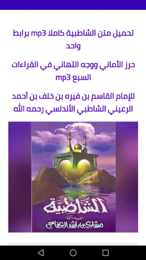 Through the application, you can download the text of Al-Shatibiya pdf written for reading with the voice of His Eminence Sheikh Mishary Rashid Al-Afasy.