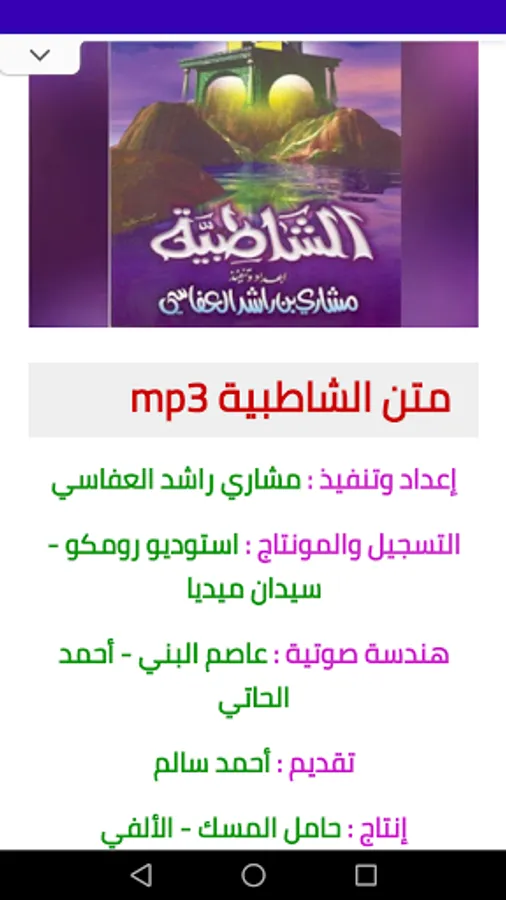We present to you the application of Matn Al Shatbya mp3 with the voice of Mishary Al-Afasy, and we hope that you will like it.