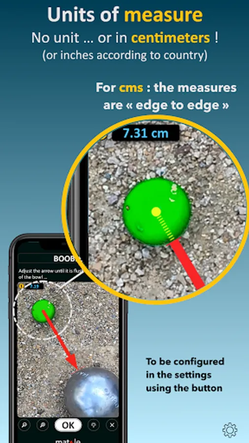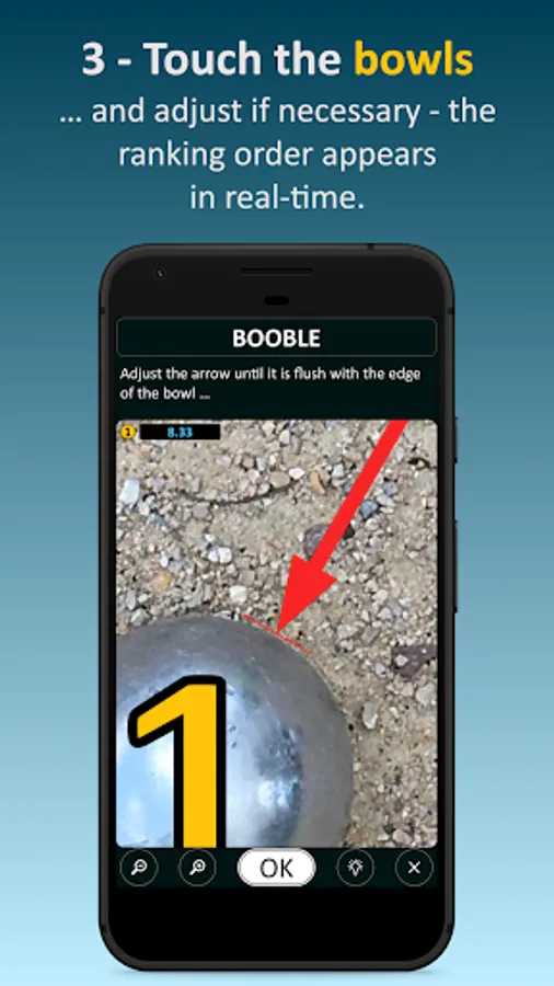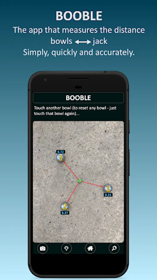 The BOOBLE app allows you to measure the distance between the bowls and the jack during a pétanque game ... or any other game requiring a distance measurement between bowls and jack !