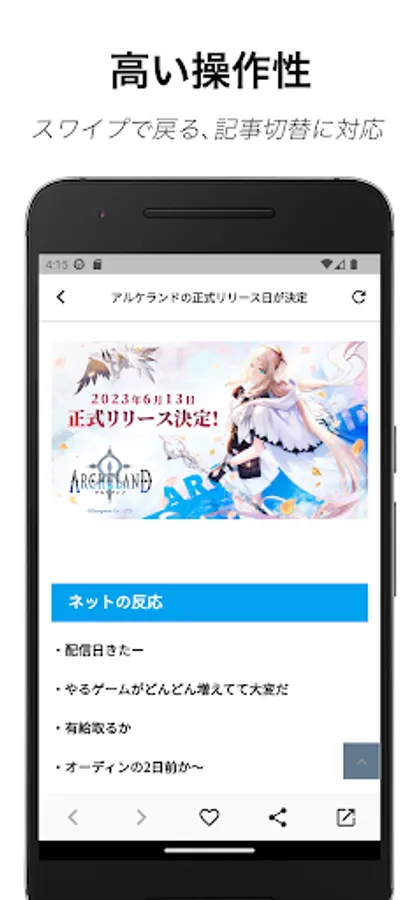 - Article switching function by swiping