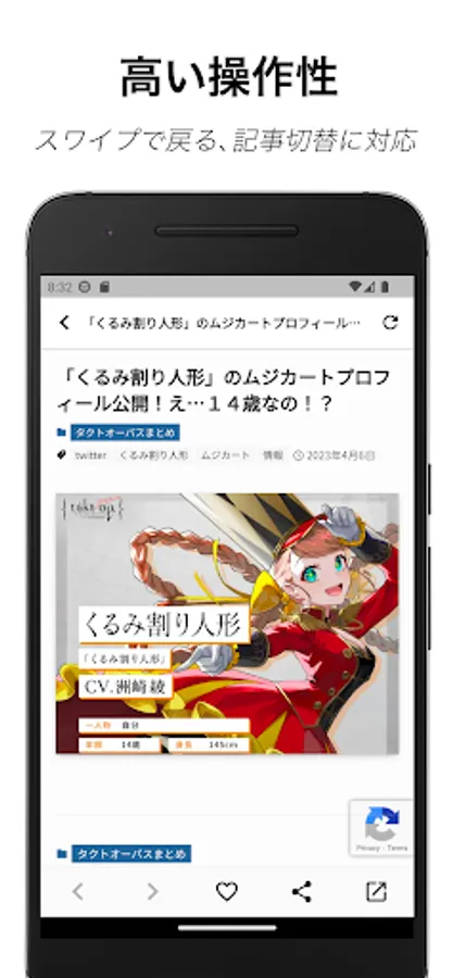 - Article switching function by swiping