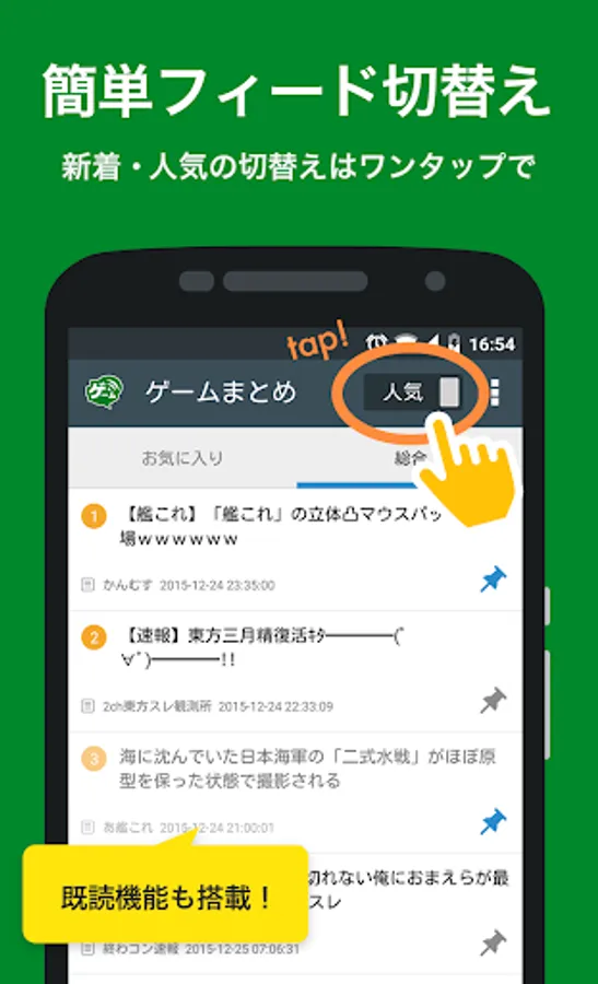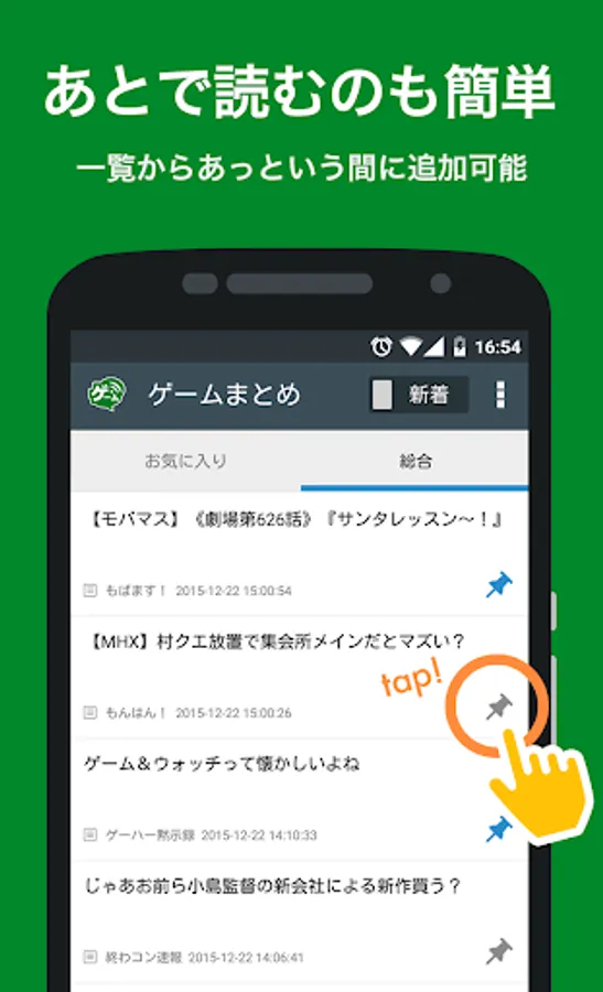 あとで読みたい記事は一覧画面でさっと登録ができ、お気に入りとの使い分けもできます。