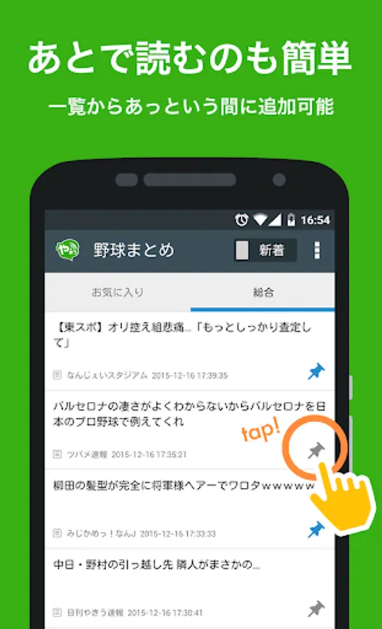 あとで読みたい記事は一覧画面でさっと登録ができ、お気に入りとの使い分けもできます。