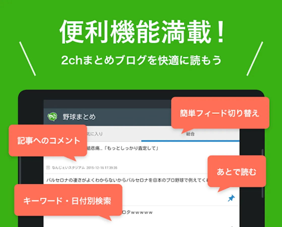 プロ野球・MLB・高校野球・なんJ雑談など、野球に関するニュースはこのアプリ1つでだいたいチェックできるぞ!!