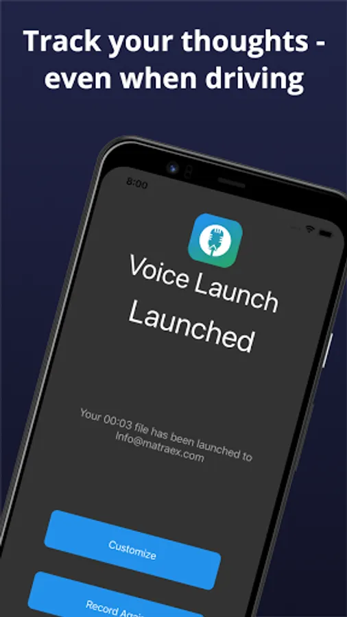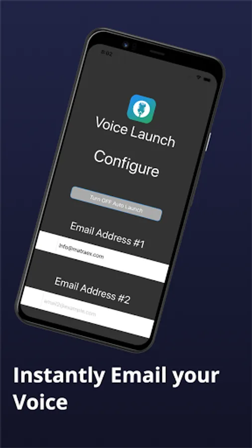 As soon as the app opens it starts recording your voice. Click stop and the audio is sent to your email. Use the app to collect your audio recording and save it to the email you choose.
