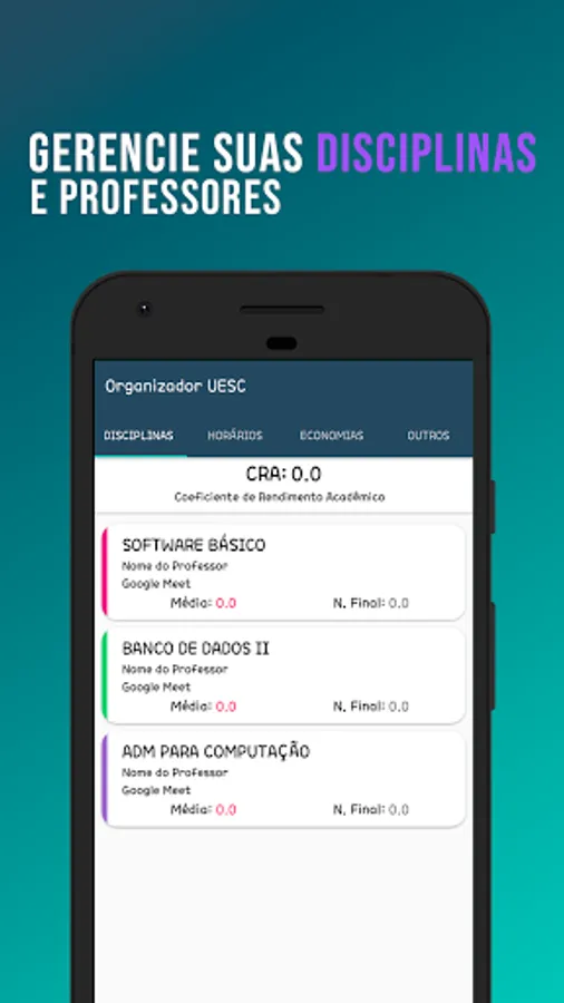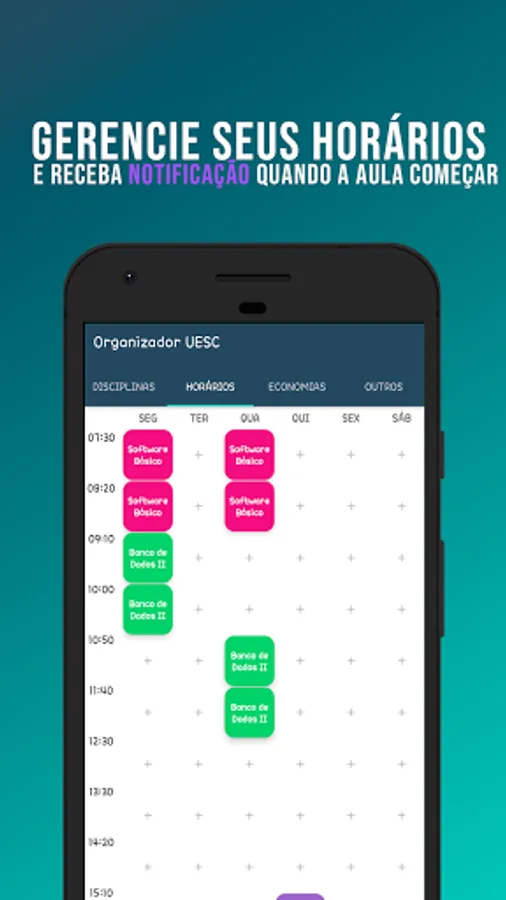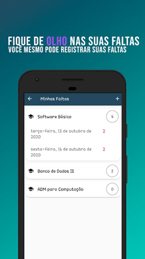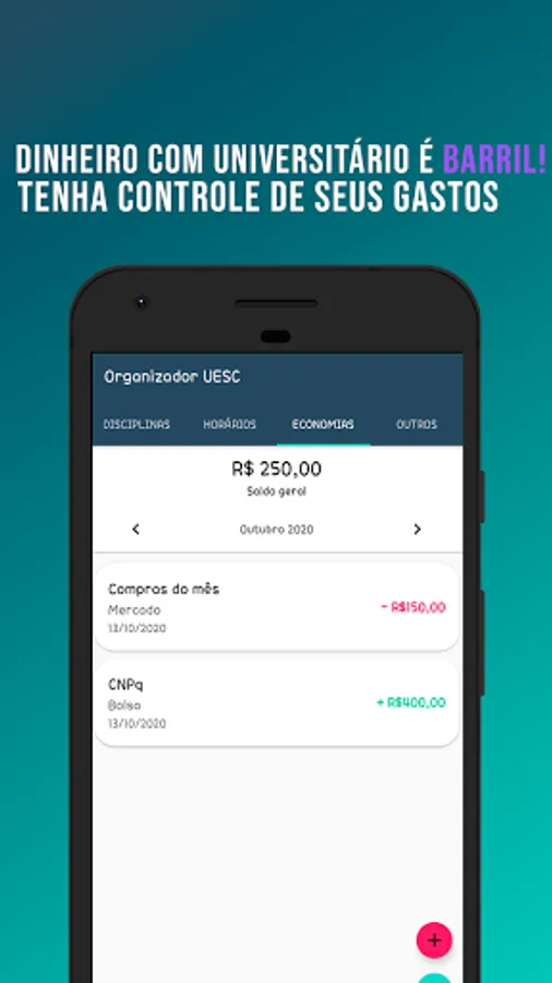 There is also the possibility to manage your income and expenses, after all, the financial life of the Uesquian university student is not easy. And if you know you are going to be absent on the day of class, already register your absence in the app and keep an eye on not to exceed the limit of absences: p