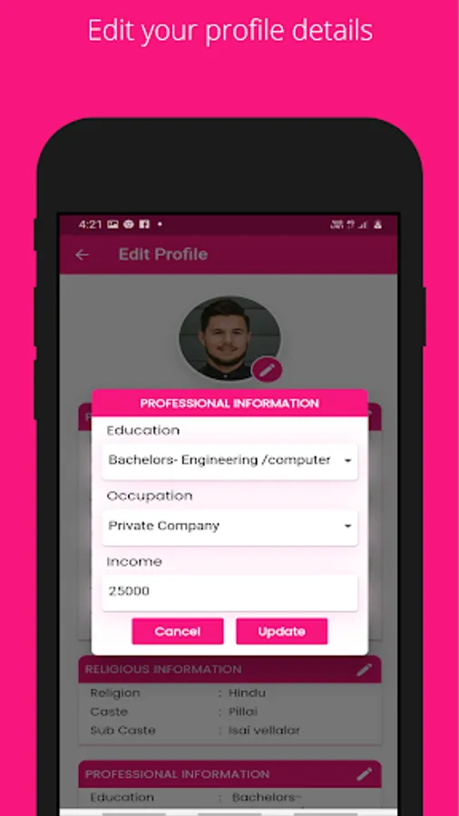 • App syncs with your Matrimony Website Data