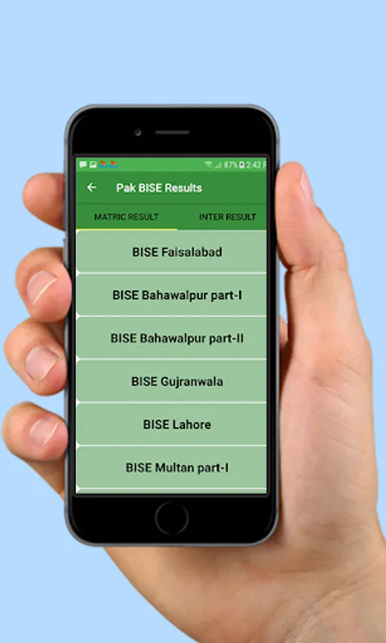 Matric Result: Pak BISE Results, awesome app provide Matric and FA/Fsc result, get all board of intermediate and matric results in one place, just install and find your BISE, board and enter you roll number and get results. This Application lets you find Results of Major Boards of Higher and Secondary Boards HSSC & SSC (Matric and FA/FSc 9th 10th 11th and 12th)