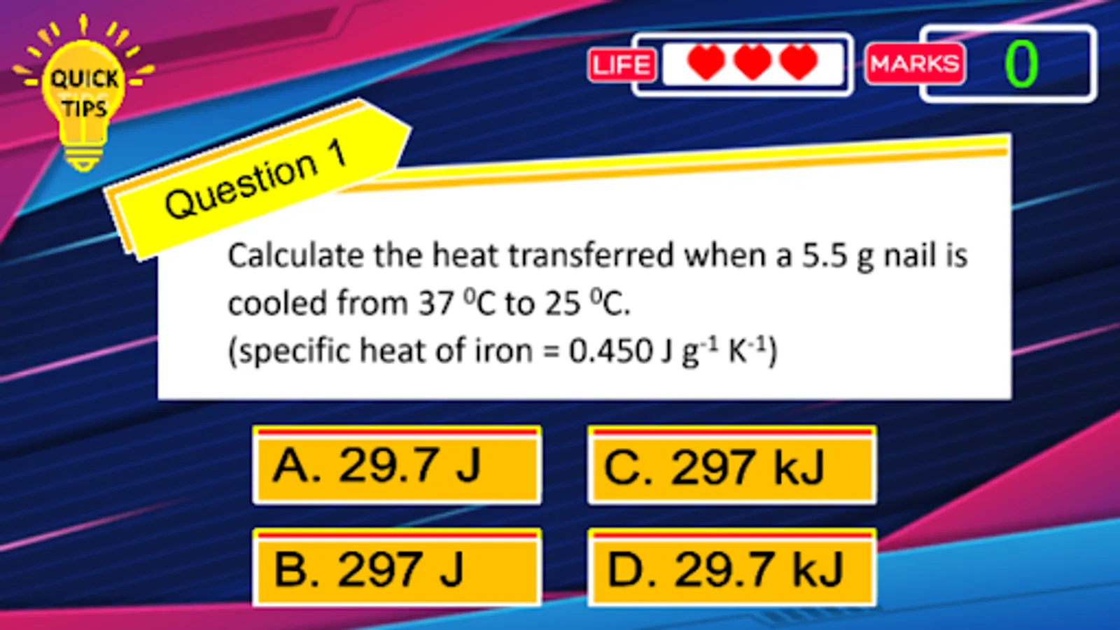 This app contains learning materials for the topic of Thermochemistry. Study the notes and answer variety of exercises such as multiple choice questions, drag and drop answers.