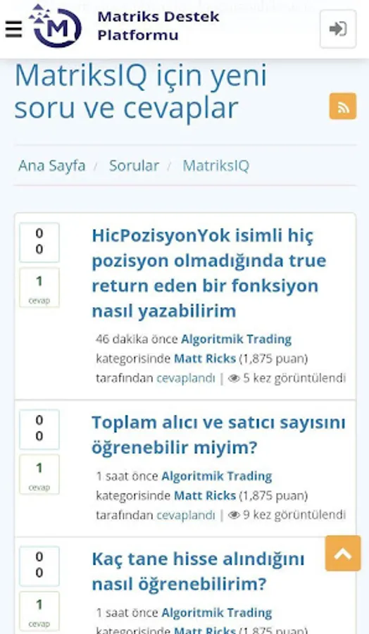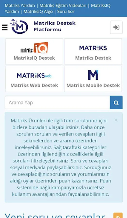 What is Matriks Support Platform? The Matriks Support Platform is an environment created to find answers to the questions of the Matriks products you use or to answer those seeking answers. This platform creates a content flow related to Matriks, Web Trader, Matriks Mobile, Matriks Mobile IQ and Matriks IQ products.
