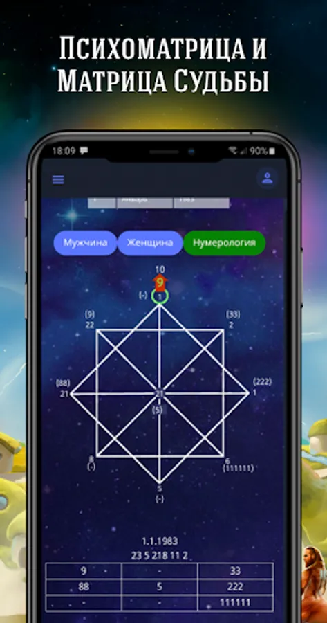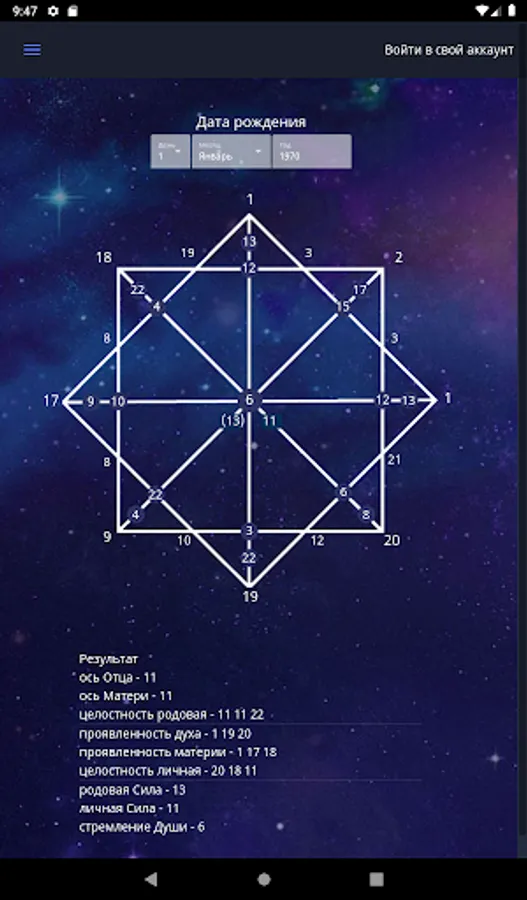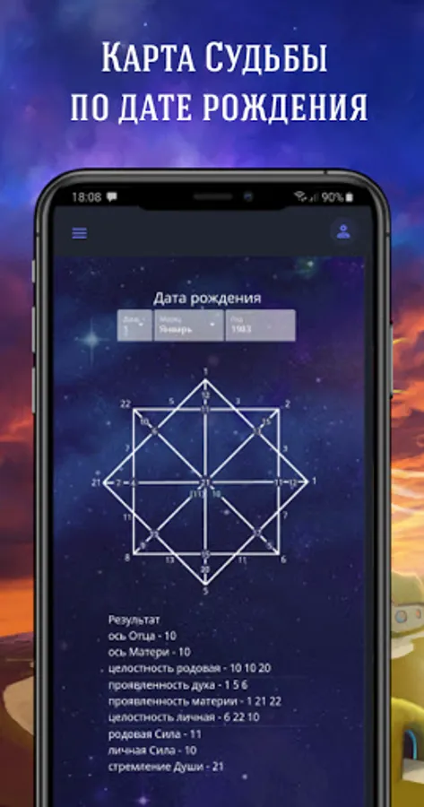 The Destiny Matrix method gives a very accurate portrait of a person by date of birth. The app calculator allows you to quickly calculate by date of birth - just enter the date and click on the app screen.