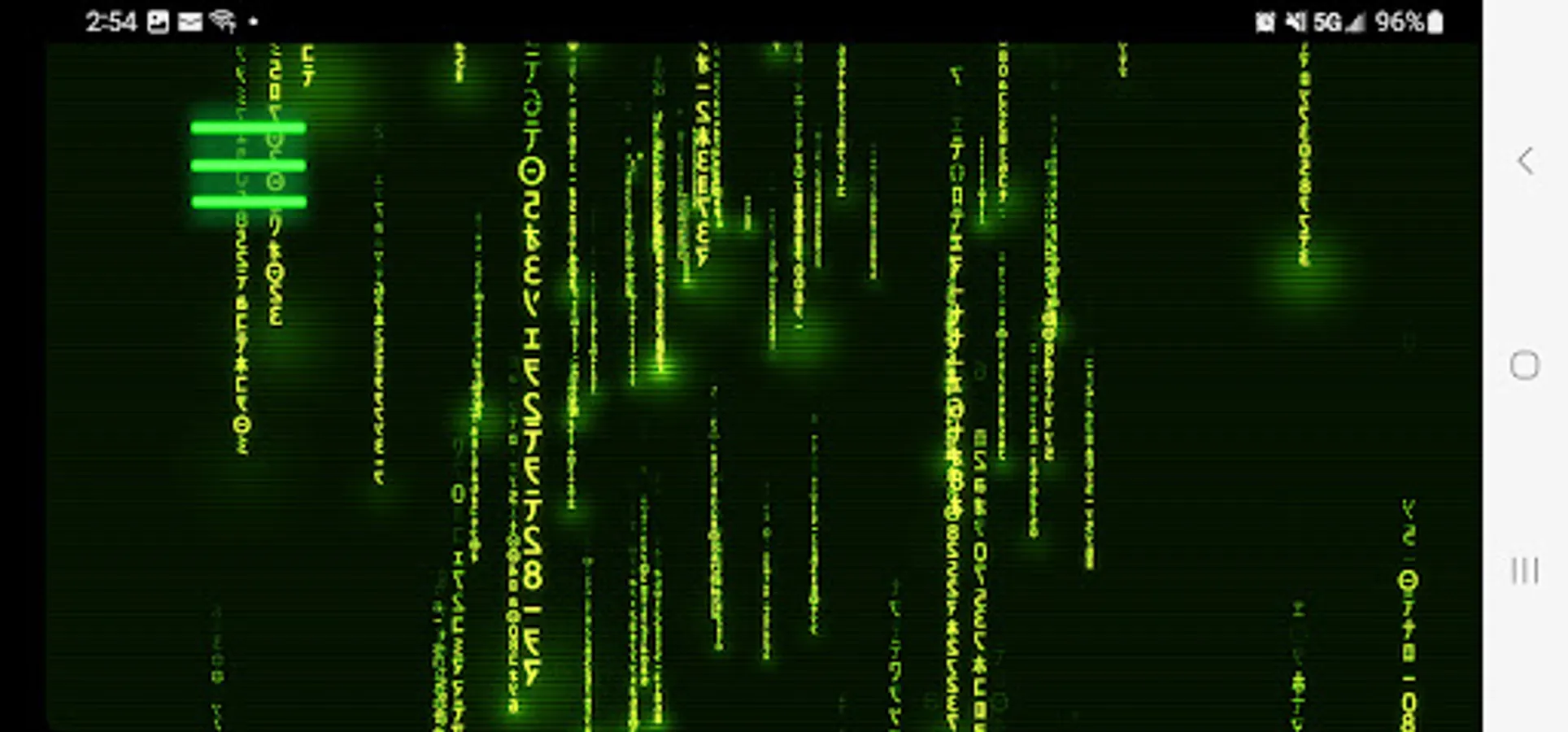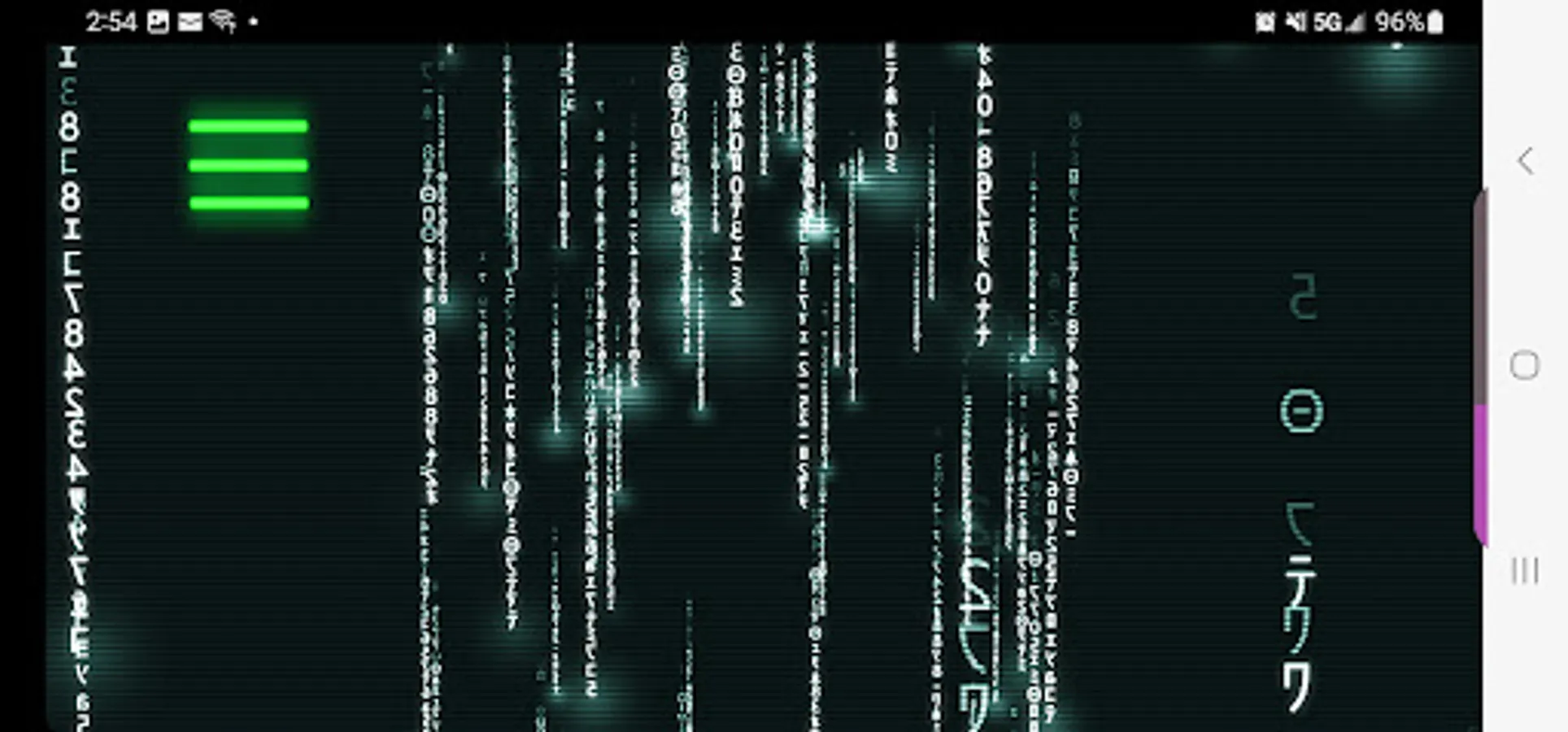 - Fully 3D Interactive Live Wallpaper Rendered with 6 Types of 3D Matrix Digital and 5 Types of Interactive Touch Matrix Rain Visual Effects with Adjustable Color.