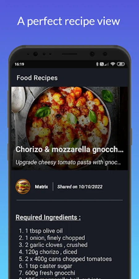 The app which 'Food Recipes', which you are using now is an online app to publish recipes.