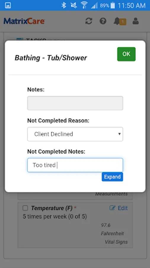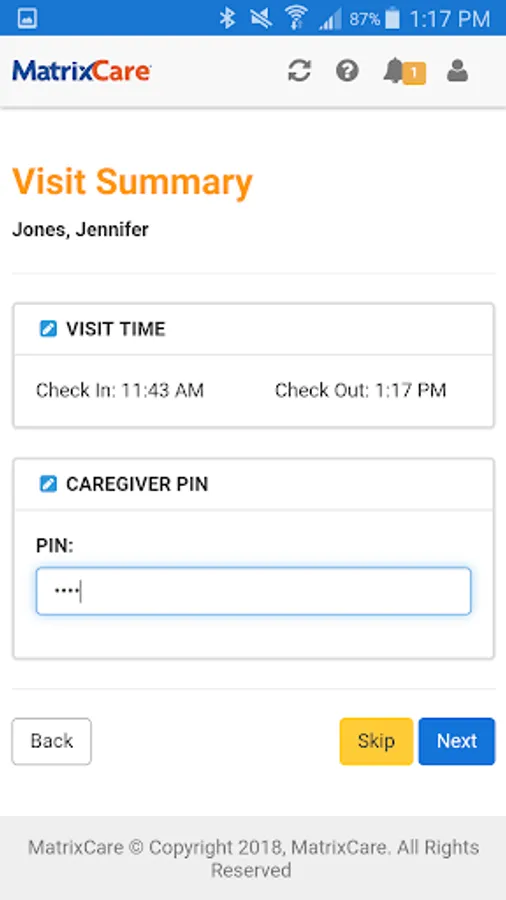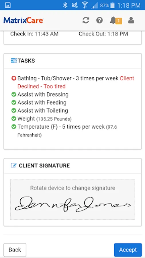 Capture Caregiver electronic signature