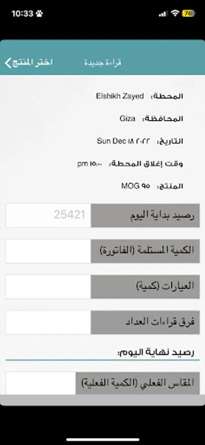A system for storing and calculating fuel stock data at different gas stations and knowing the deficit and increase of the traded quantities.