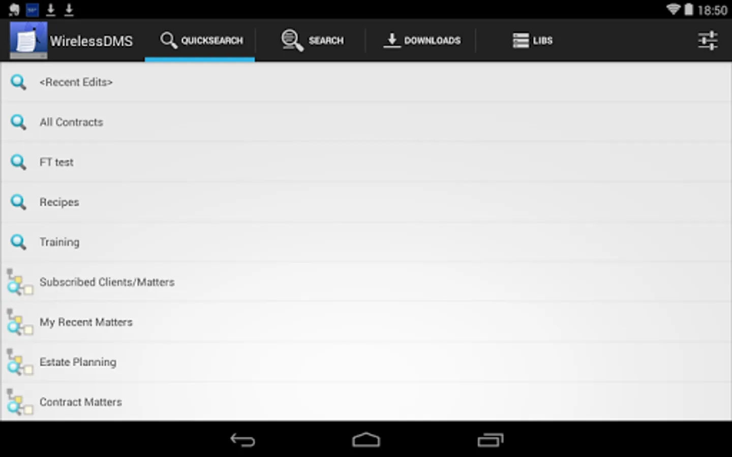 The WirelessDMS Client for Android is an eDOCS DM client from Matrix Logic.