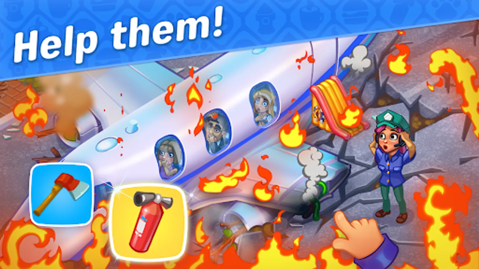 This is a casual game for anyone who dreams of becoming a rescuer and helping people in an emergency. Don’t miss the opportunity to bask in the glory of your good deeds! This game gives you a chance to make this dream come true! Now city residents are in a panic!Wild animals roam the streets, fire burns diner, broken hydrants spray water all over the street…What are they gonna do when their familiar homescapes are thrown into chaos? Who, if not rescuers, can dash off and restore the normal way of life!