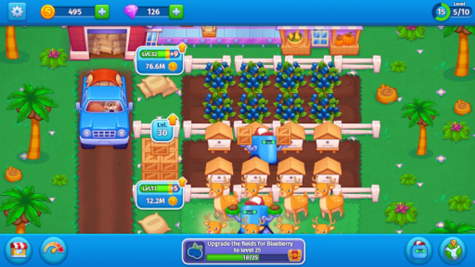 As an idle tycoon in this farm life game, you'll consistently earn income even while you're away. Your dependable robots maintain productivity even when you're offline, ensuring your idle tycoon continuous growth.