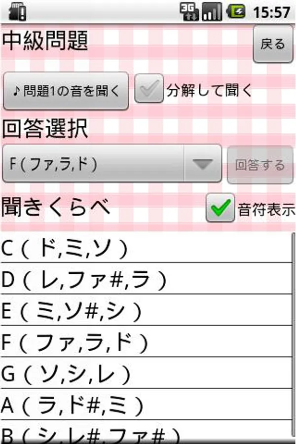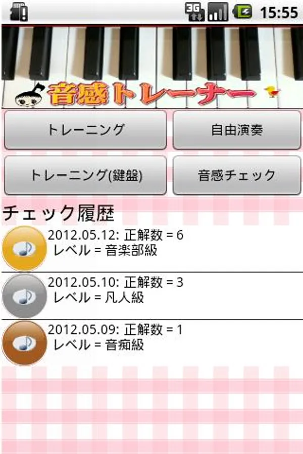 In the training mode, the musical sensitivity is single-mindedly forged by selecting the level of the favor from four levels of the following, and answering the music scale of the sound reproduced at random.