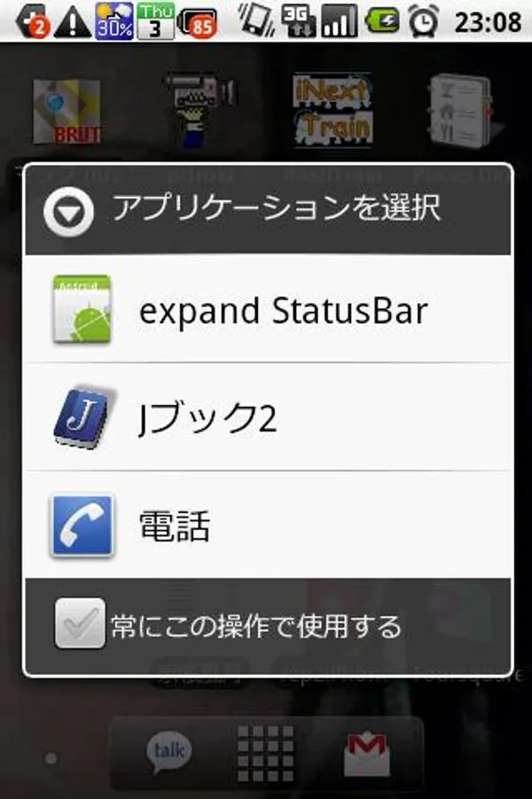 When push "Off Hook" or "Search Long Press" or " Camera Long Press" or "Swipe up from bottom (only support Jelly Bean)" , then pull down to notification window in status bar or launch application you selected.