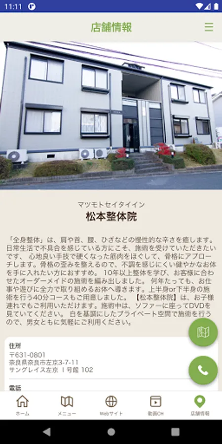 The map of the store is displayed and it is linked with the map app, so you can easily find it even when you visit the store for the first time.
