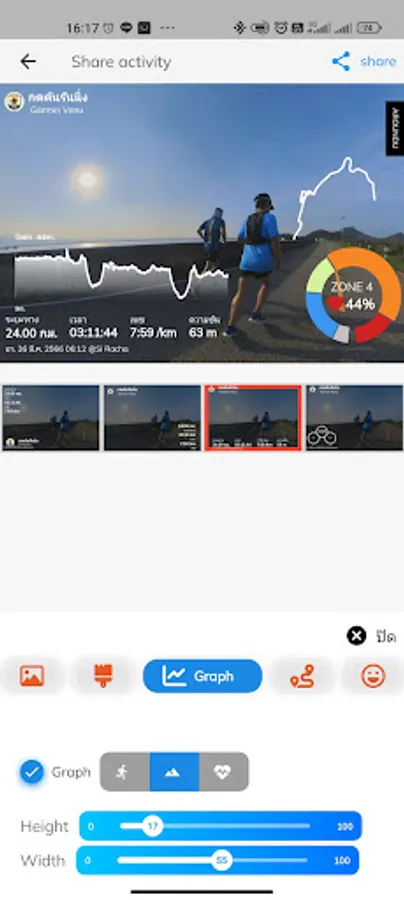- Show graphs such as Pace, Gain, Heart rate, Zone