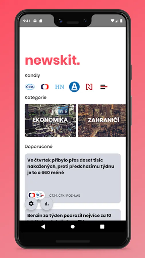 Newskit application. allows you to view the best news from Czech sources, sorted into categories and channels. For each report, you can open a summary that briefly introduces you to the most important of the article. If you want to read the whole article, or look at the added photos and media, you can view the detail with the website of the appropriate source. For multi-source topics, you can easily switch between channels to create the most objective view possible. In addition, the application uses machine learning to select better messages for you. Our mission is to stimulate your interest in news from around the world and at home and verification of information, which is why you can monitor your progress using statistics. Be in the picture and watch the news with the Czech newskit application!