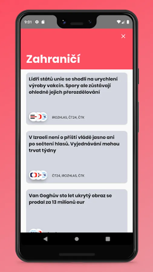 - (Czech :) News, Czech Television, ČTK, Deník N, Hospodářské noviny, iROZHLAS,