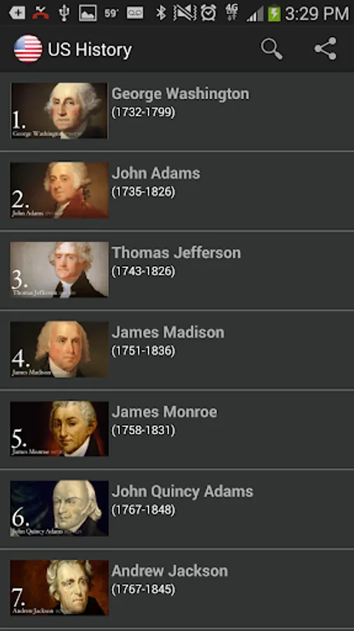All presidential information is from www.whitehouse.gov .. This information does not necessarily represent the political views of the developer. Please do not leave feedback based on this information. All other information is borrowed from credible sources and does not reflect the developer's opinion.